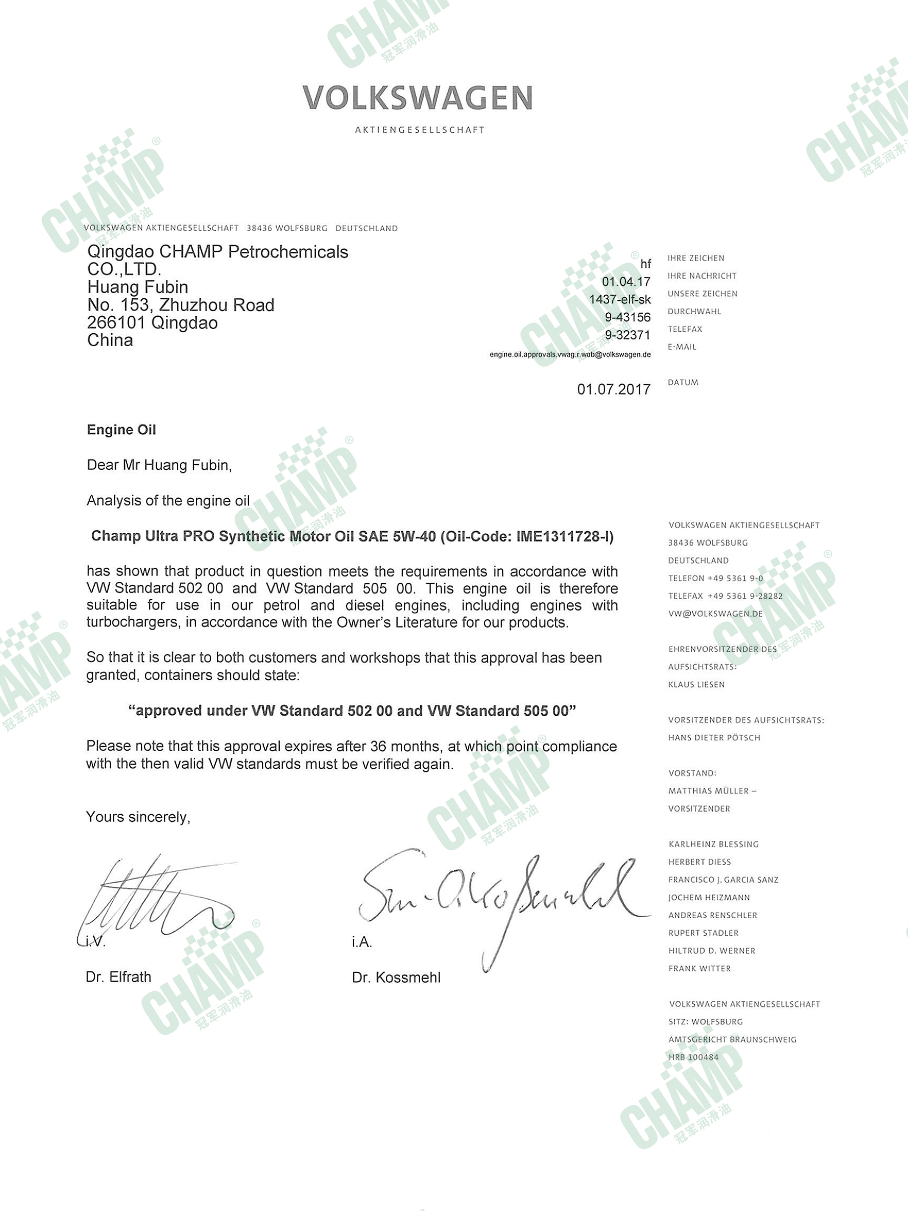 冠軍嘉能5W-40 SQ A3/B4酯類長效全合成機油,更低揮發(fā),更高保護!