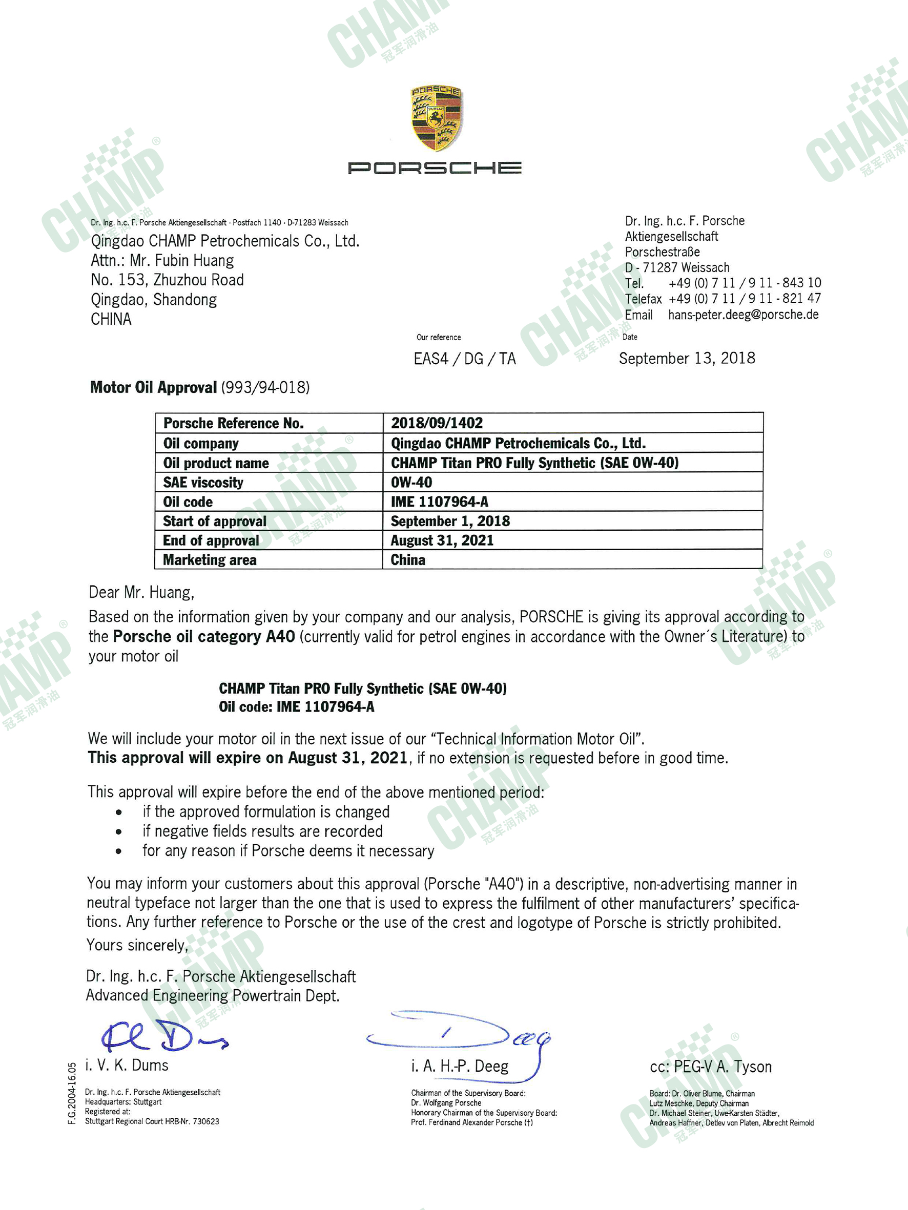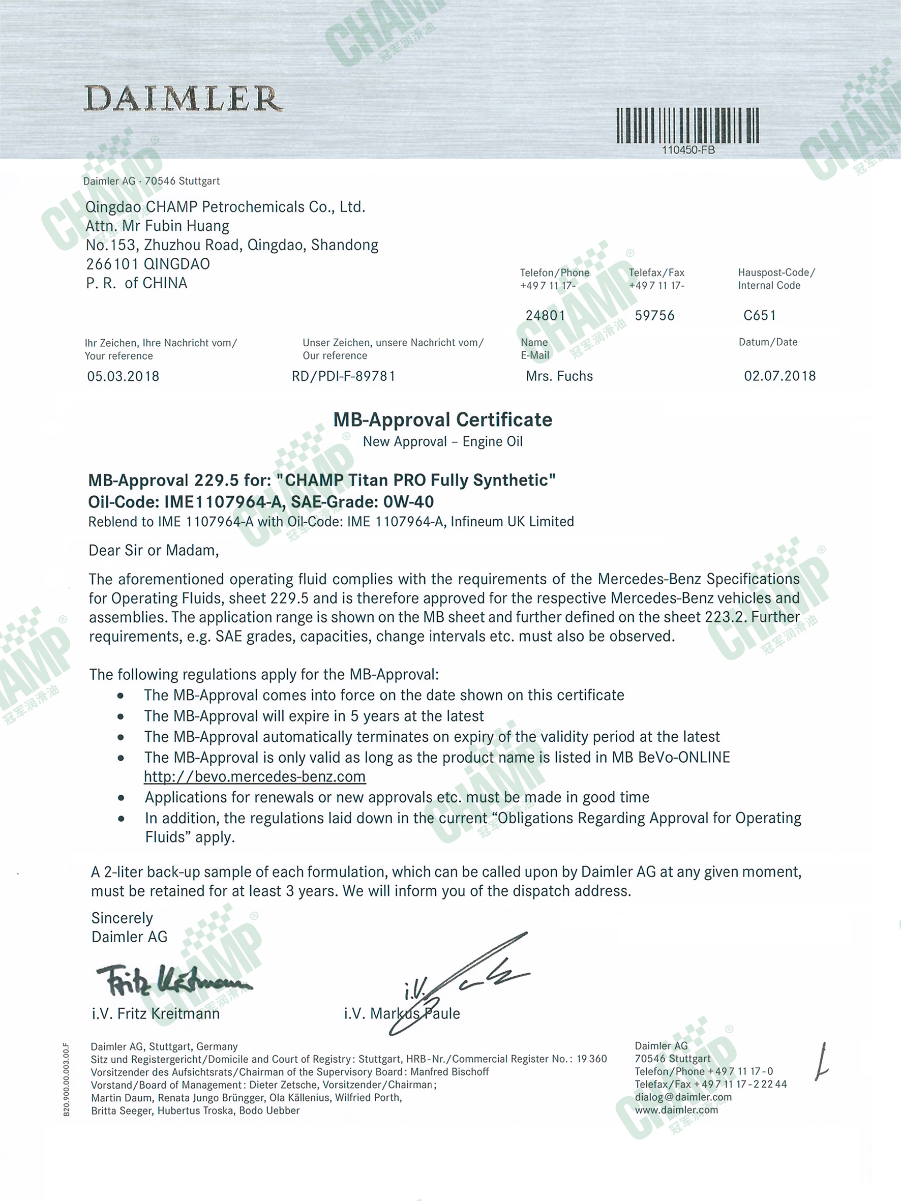◆ 保時(shí)捷Porsche A40認(rèn)證;奔馳MB-Approval 229.5認(rèn)證;