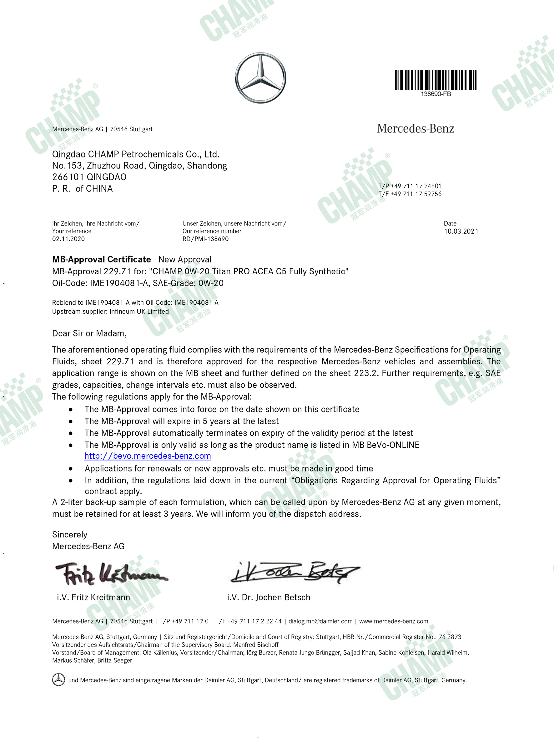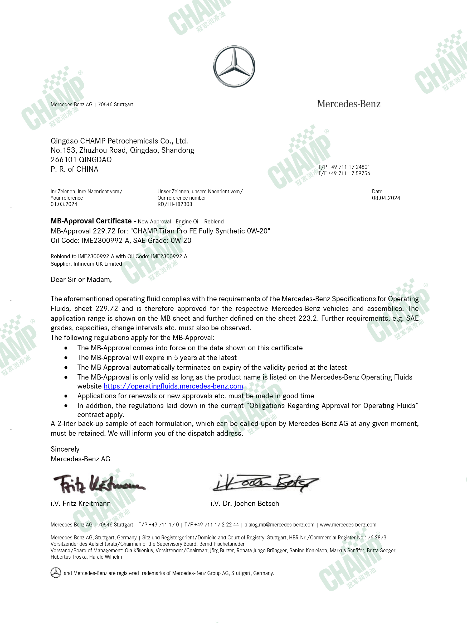 ◆ 奔馳MB-Approval 229.71認(rèn)證;奔馳MB-Approval 229.72認(rèn)證;
